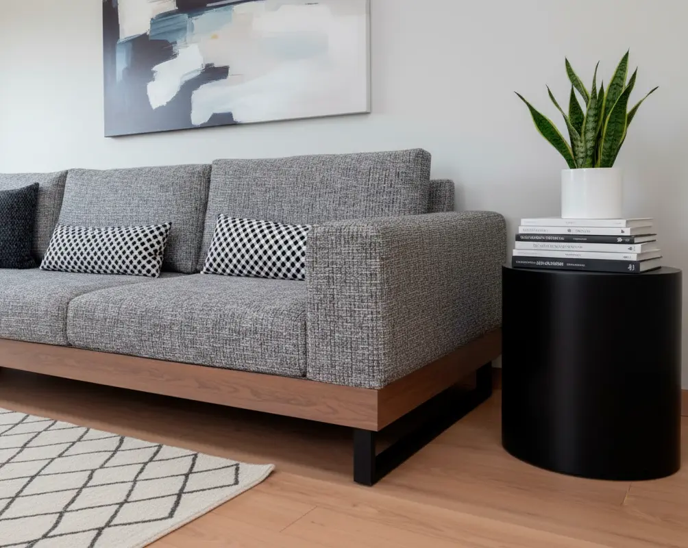 Φανταστείτε τον S128 να δεσπόζει στο σαλόνι σας, πλαισιωμένος από ξύλινες επενδύσεις τοίχου και γήινα χρώματα, όπως στις φωτογραφίες. Η γκρι απόχρωση του καναπέ δημιουργεί ένα ουδέτερο, κομψό φόντο που αναδεικνύει τα διακοσμητικά μαξιλάρια και το ξύλινο πάτωμα. Το minimal τραπεζάκι και το γεωμετρικό χαλί ολοκληρώνουν το σκηνικό, προσφέροντας έναν χώρο που προσκαλεί σε χαλάρωση, φιλοξενία και καθημερινή απόλαυση.